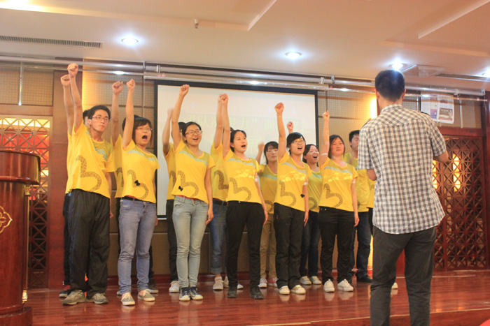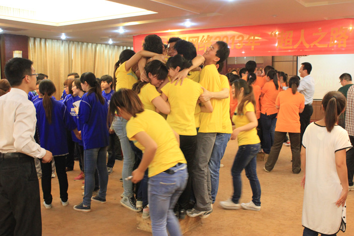 我們在一起商討對策 團結(jié)就是力量 抱團站木箱 同事們加油勝利在眼前 我們一起加油 為精彩團隊高聲吶喊 我們一起加油我們坐在一起聽老師講要求