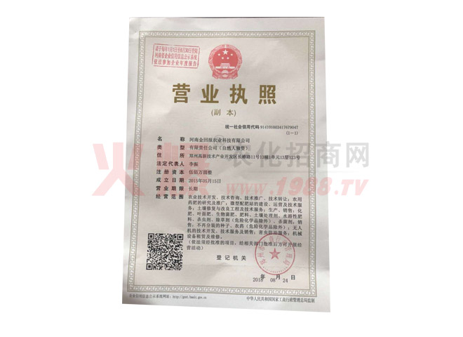 河南金回報農(nóng)業(yè)科技有限公司是集科研、生產(chǎn)、銷售為一體的綠色有機(jī)農(nóng)業(yè)科技公司2018年公司與洛陽采潤環(huán)保材料有限公司實行股份制改造,公司與北京化工大學(xué)合作研發(fā)了聚天門冬氨酸(PASP)產(chǎn)品,注冊商標(biāo)為“金回報”。PASP被列入國家十一五攻關(guān)項目“863”計劃。